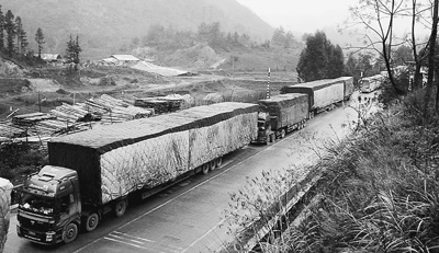 1月2日,眾多車輛滯留在210國道廣西南丹縣六寨段。符龍強攝(新華社發)
