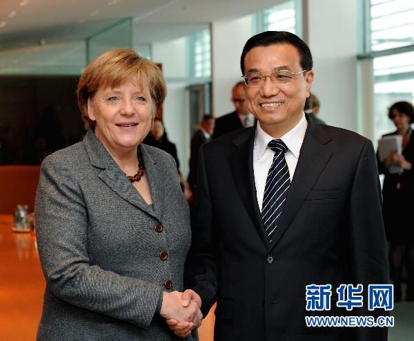 李克強首先轉達了胡錦濤主席和溫家寶總理對默克爾總理的新年問候。他說,此訪的目的是要落實好兩國領導人達成的共識,促進中德關系取得新的發展。