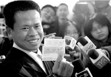 昨天上午,一名湖南旅客取得了武廣高鐵售出的首張實名制車票。新華社發(fā)