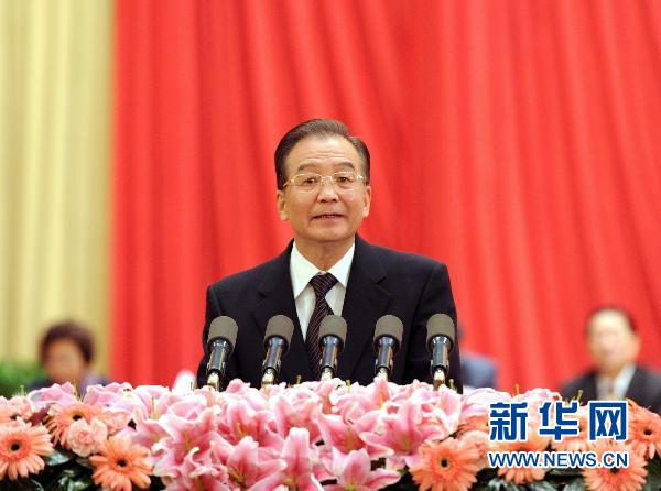 1月14日上午,中共中央、國務院在北京隆重舉行國家科學技術獎勵大會,黨和國家領導人胡錦濤、溫家寶、李長春、習近平、李克強出席大會。這是中共中央政治局常委、國務院總理溫家寶在大會上發表講話。新華社記者 李濤 攝