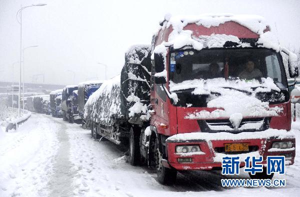 1月20日晨,車輛滯留在昌九高速路上。 1月19日下午開始,暴雪突襲江西九江,積雪厚度超過12厘米,連接鄂贛皖三省的交通大動脈——九江長江大橋(公路橋)橋面出現結冰狀況,導致昌九高速從19日22時起開始堵車。截至20日清晨,暴雪仍在繼續,從南昌到九江方向的車輛已滯留18公里。新華社記者周科攝