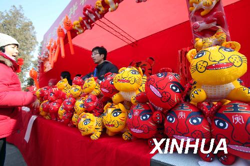 資料圖片:2010年2月13日,游人在北京地壇公園廟會選購吉祥虎。農歷虎年即將來臨,各種虎主題玩具成為春節廟會上的寵兒。新華社發(陳曉根 攝)