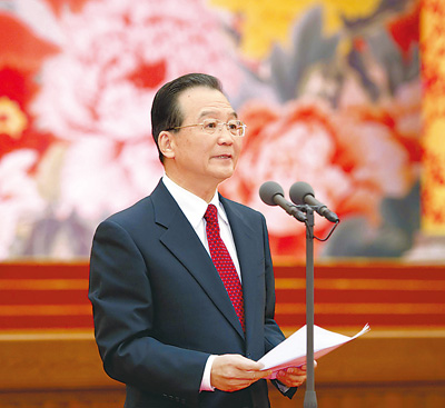 2月1日,中共中央、國務院在北京人民大會堂舉行2011年春節團拜會。這是中共中央政治局常委、國務院總理溫家寶在團拜會上講話。新華社記者 黃敬文攝