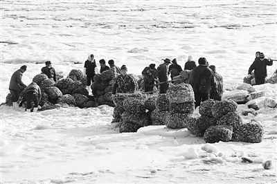 遼寧省連莊河市黑島鎮黃貴城村漁民在收獲牡蠣。王大斌 攝