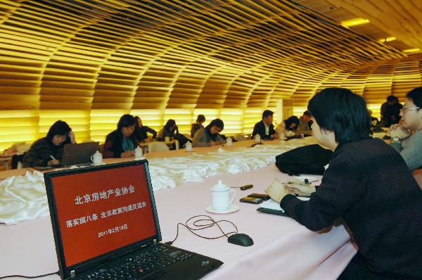 2月16日,北京樓市調控新政出臺強化“限購”等措施。這是2月16日拍攝的新聞發布會現場。新華社記者趙琬微攝