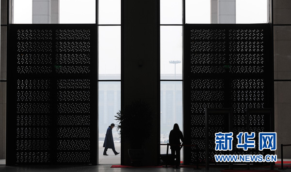 這是國博西大廳鏤空造型的銅門(2月16日攝)。經過3年多改擴建的國家博物館將于4月1日重新開館迎客,屆時,國博將舉辦大型主題展覽《啟蒙的藝術》。 新華社記者 王建華 攝