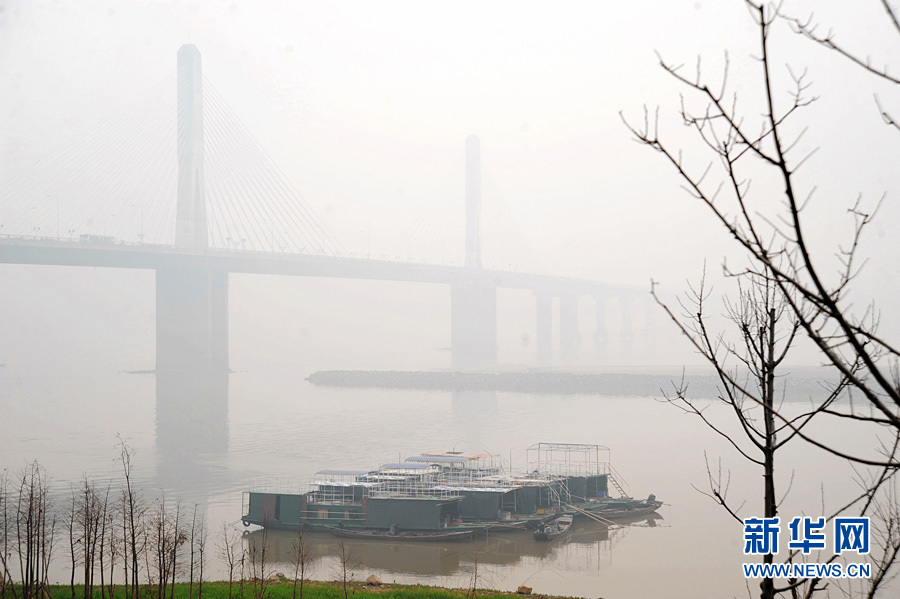 2月23日,長沙市湘江銀盆嶺大橋被濃霧籠罩。當日,一場濃厚的春霧籠罩長沙市,城區部分路段能見度不足百米,給市民出行帶來不便。 新華社記者 龍弘濤 攝