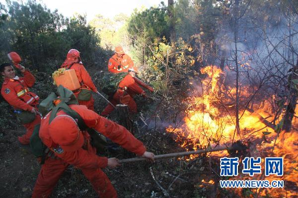 2月28日,在云南省麗江市玉龍縣黃山鎮(zhèn)五臺(tái)辦事處所屬集體山林,麗江森警支隊(duì)官兵正在滅火。當(dāng)日凌晨5時(shí)左右,這處集體山林發(fā)生森林大火。目前,火勢(shì)尚未得到控制,當(dāng)?shù)匾褟膶庉酢⒂绖倏h抽調(diào)森警增援,力爭(zhēng)3月1日天亮前控制火勢(shì)。李宗榮攝(新華社發(fā))