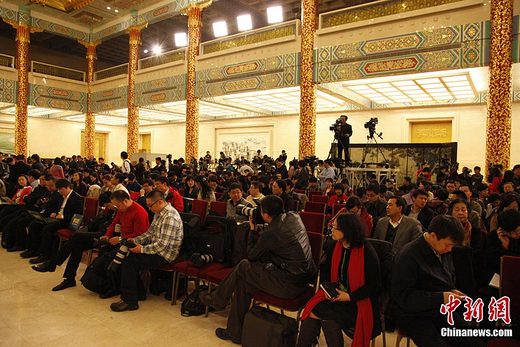3月4日,十一屆全國人大四次會(huì)議在人民大會(huì)堂三樓金色大廳舉行新聞發(fā)布會(huì),由大會(huì)發(fā)言人就會(huì)議議程和人大工作相關(guān)的問題回答中外記者的提問。中新網(wǎng)記者 楊磊 攝