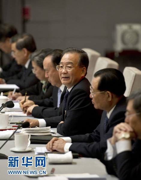 3月7日,中共中央政治局常委、國務(wù)院總理溫家寶參加全國政協(xié)十一屆四次會議經(jīng)濟、農(nóng)業(yè)界政協(xié)委員聯(lián)組討論。 新華社記者李學(xué)仁攝