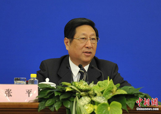 十一屆全國人大四次會議于3月6日下午14時在人民大會堂三樓金色大廳舉行記者會,由國家發展和改革委員會主任張平、副主任朱之鑫、副主任徐憲平就“十二五”規劃綱要答記者問。圖為國家發展和改革委員會主任張平回答記者提問。中新網記者 楊磊 攝