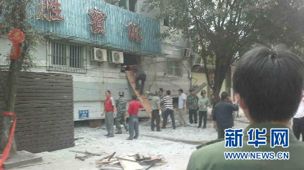 據中國地震臺網中心網站消息,云南省德宏傣族景頗族自治州盈江縣,北京時間10日12時58分,發生里氏5.8級地震。這是盈江縣縣城地震現場。新華社發