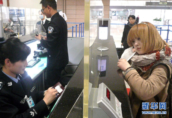 3月16日,從日本抵達上海的旅客在接受邊檢。當日,上海機場口岸迎來日本航班入境高峰。據上海機場邊檢民警介紹,從16日10時47分起至12時,共有12架從日本起飛的航班集中抵達浦東國際機場,入境旅客數達2500余人。新華社發(劉友平攝)