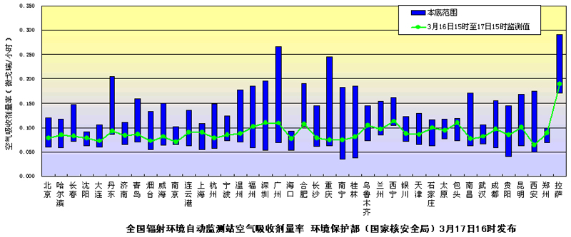 環境保護部(國家核安全局)發布3月17日全國主要城市環境輻射水平