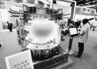 近日,在北京“十一五”國(guó)家重大科技成就展上,觀眾參觀國(guó)際熱核聚變裝置模型展臺(tái)。阿青攝(人民圖片)