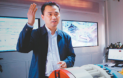 4月22日,黃昌富在天津西站至天津站地下直徑線工程工地項目部向記者介紹工程情況。 新華社記者 邢廣利攝