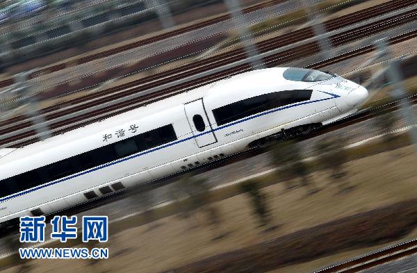 資料圖片:2月20日,一列高速動車組正快速駛離鐵路上海虹橋站。新華社記者 陳飛 攝