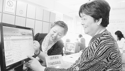 圖為蕪湖市鏡湖區三山里社區居委會工作人員向居民介紹市民心聲網操作程序。記者 朱磊攝