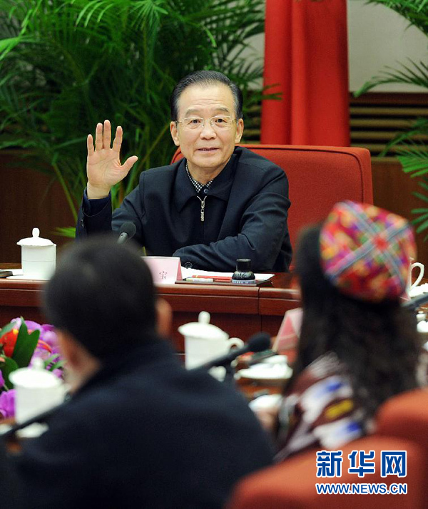 2月6日至10日,國務院總理溫家寶在中南海主持召開五次座談會,聽取社會各界人士對《政府工作報告(征求意見稿)》的意見和建議。這是2月7日,溫家寶聽取基層群眾對《政府工作報告(征求意見稿)》的意見和建議。 新華社記者 李濤 攝