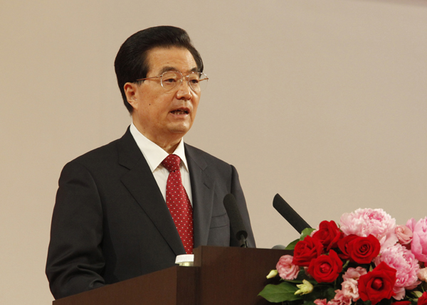 7月1日,中共中央總書記、國家主席、中央軍委主席胡錦濤在慶祝香港回歸祖國15周年大會暨香港特別行政區第四屆政府就職典禮上發表重要講話。新華社記者鞠鵬攝