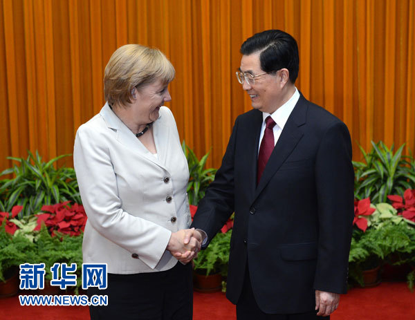 胡錦濤首先祝賀第二輪中德政府磋商取得成功。胡錦濤說,作為世界有重要影響的國家,中德在雙邊、地區(qū)和多邊事務中擁有廣泛共同利益,肩負重要責任,面臨共同挑戰(zhàn)。中方高度重視對德關(guān)系,愿與德方一道,切實落實雙方高層會晤成果和第二輪中德政府磋商提出的各項任務,增進戰(zhàn)略互信,深化務實合作,把展望未來的中德戰(zhàn)略伙伴關(guān)系推上更高水平。