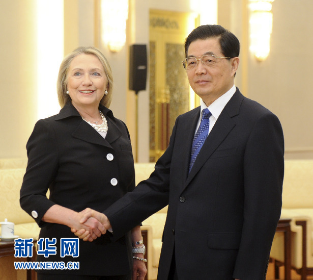 9月5日,中國國家主席胡錦濤在北京人民大會堂會見美國國務卿希拉里·克林頓。 新華社記者 姚大偉 攝