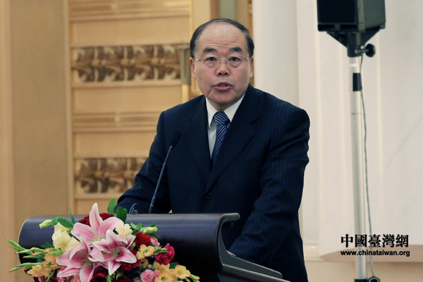 中共中央臺灣工作辦公室、國務院臺灣事務辦公室與海峽兩岸關系協會26日下午在人民大會堂舉行“九二共識”20周年座談會。圖為全國臺灣研究會執行副會長周志懷在座談會上發言。
