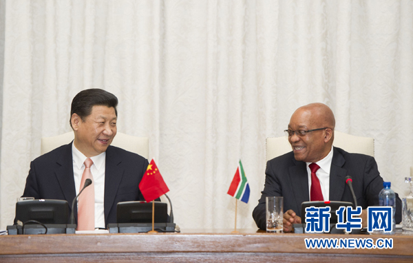 祖馬表示,習近平主席首次出訪就選擇南非,這是南非的榮幸,充分體現了南中關系的高水平。南非從戰略高度重視同中國加強團結合作,實現共同發展,推動國際秩序朝更加公正合理的方向發展。