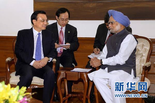 國務(wù)院總理李克強19日在新德里與印度總理辛格舉行小范圍會見并出席辛格舉行的晚宴。雙方就中印關(guān)系及共同關(guān)心的問題深入交換看法。