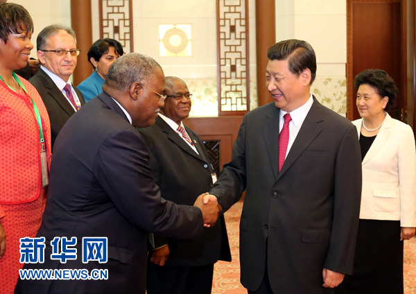 習近平表示,中非友好源遠流長,歷久彌新,經受了國際風云變幻的考驗,收獲了比黃金還要寶貴的真情和信任。中非合作論壇成立以來,中非關系進入了新的快速發展軌道。雙方政治互信進一步提升,務實合作成果豐碩,在國際事務中密切配合協調,中非新型戰略合作伙伴關系內涵進一步充實。中非是命運共同體,有共同的歷史遭遇、發展任務和光明前途。中方愿與非洲國家和人民一道,把握難得的歷史機遇,堅持平等互利、合作共贏,更好地維護中非乃至世界人民的共同利益。
