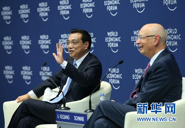 李克強:尊敬的施瓦布主席先生,各位企業(yè)家、新聞界的朋友,我很高興應施瓦布先生的盛情邀請出席世界經(jīng)濟論壇在大連舉辦的年會。我也很高興和在座的許多新老朋友們見面,借此機會感謝各位長期以來對中國經(jīng)濟社會發(fā)展所傾注的心血、給予的努力。