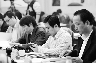 新聞發(fā)布會現(xiàn)場,“網(wǎng)絡(luò)大V”邊提問邊發(fā)微博。記者金振強 攝