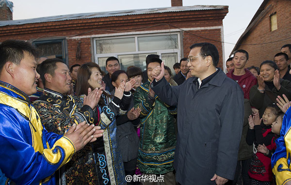 據(jù)新華社“新華視點”微博報道,撫遠縣八岔赫哲族鄉(xiāng)是全國唯一赫哲族鄉(xiāng),今夏洪災(zāi)中八岔村全村198戶全部受災(zāi),150戶房屋損毀嚴重。得知李克強總理來到村里,村民們紛紛趕著圍攏過來。李克強對大家說:“留得青山在,不怕沒柴燒。赫哲族因水而生因漁能發(fā),在黨和政府的幫助下,你們的未來一定會更美好!”