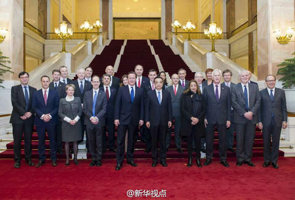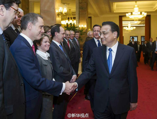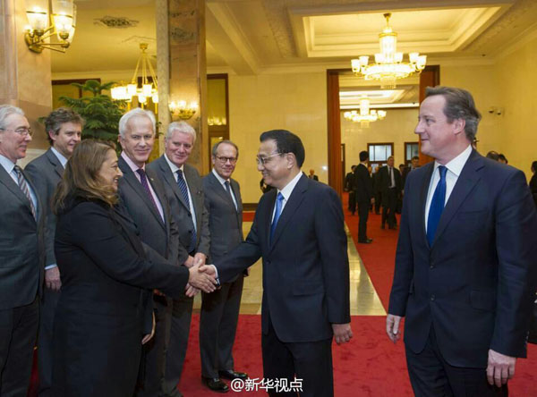 國務院總理李克強2日與英國首相卡梅倫舉行會談后,共同會見了隨同卡梅倫首相訪華的英國企業家代表。