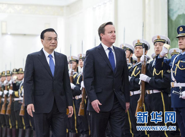 12月2日,中國國務院總理李克強在北京人民大會堂北大廳舉行歡迎儀式,歡迎來華進行正式訪問并出席中英總理年度會晤的英國首相卡梅倫。新華社記者 王曄 攝