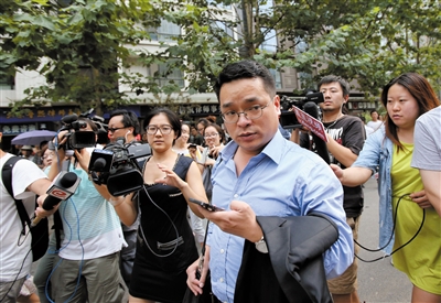 7月22日,海淀法院門前,李某某家法律顧問蘭和接受媒體采訪。當天,李某某等人強奸案舉行庭前會議。新京報記者王貴彬攝