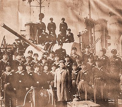 正月初七,也就是公歷2月20日,編隊到達九江。下午2時30分,毛主席終于登上了我們的“洛陽”艦。他走到我們中間,和藹地詢問我們衣服夠不夠穿,飲食習慣不習慣,津貼夠不夠花。軍艦過小孤山時,主席舉起望遠鏡,邊望邊說:“過去這邊的水道很窄,現(xiàn)在變寬了,水道變了,世界也變了。”當主席得知“洛陽”艦的排水量只有1000噸時,他沉思了片刻,對我們說:“將來我們的海軍要有大艦!”一句話說得我們熱血沸騰。