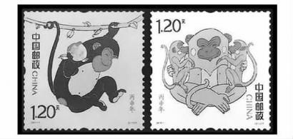 據(jù) 他介紹,我國(guó)于1980庚申年、1992壬申年和2004甲申年先后發(fā)行了三套猴年生肖郵票,今年發(fā)行的第四輪猴票是新一輪生肖票的開(kāi)篇之作。但在票面設(shè) 計(jì)上跟以往有所不同,兩枚郵票共有4只猴的形象,是歷年猴年生肖票中猴子數(shù)量最多的一次。今年猴票第一枚郵票的圖名為“靈猴獻(xiàn)瑞”,為一只靈猴捧桃,寓意 福壽吉祥;第二枚郵票的圖名為“福壽雙至”,為一只母猴抱著兩只小猴,實(shí)際上也寓意著我國(guó)二胎政策的實(shí)施,民間也稱(chēng)“二胎猴”。
