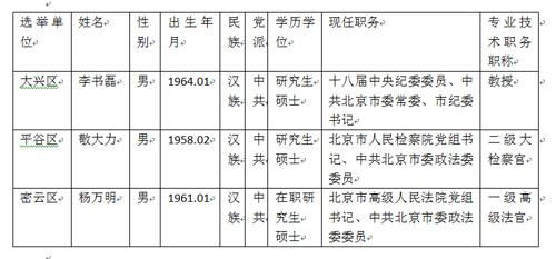 補選北京市第十四屆人民代表大會代表名單簡況: