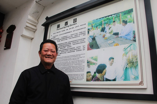 袁其忠的農家樂門口,掛著與習總書記的合影。每天出入,袁其忠總會想起習總書記前來參觀時的場景。張麗瑋攝