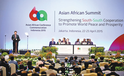 圖為:2015年4月22日,亞非領導人會議在印度尼西亞首都雅加達舉行。國家主席習近平出席會議并發表題為《弘揚萬隆精神推進合作共贏》的重要講話。
