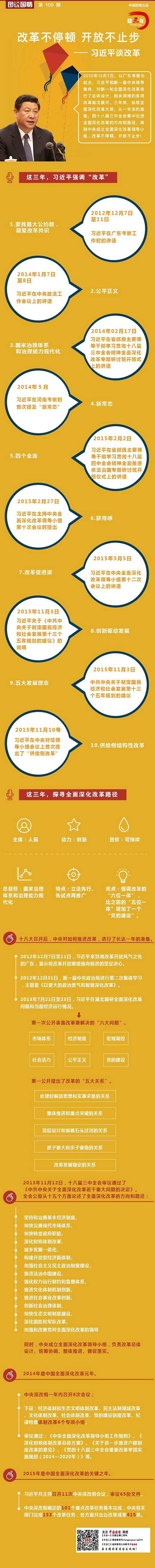 三年來,縱觀全面深化改革大局,從一年多的準備,到十八屆三中全會集中論述全面深化改革的方向和路徑,再到中央成立全面深化改革領導小組……改革不停頓,開放不止步!