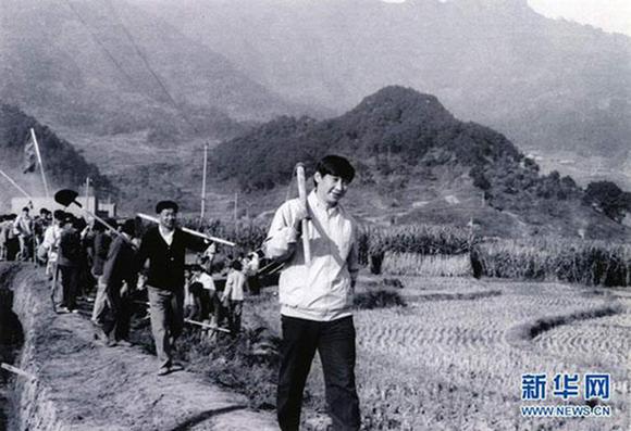 習近平扛著鋤頭參加農業勞動。來源:新華網