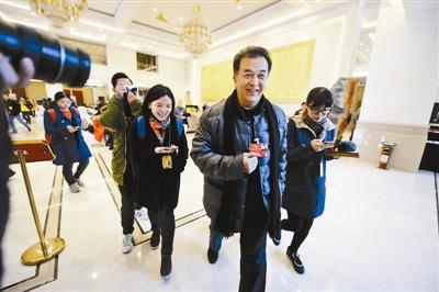 政協(xié)委員黃宏面對(duì)記者們的連續(xù)發(fā)問笑而不語 攝影/本報(bào)記者 魏彤