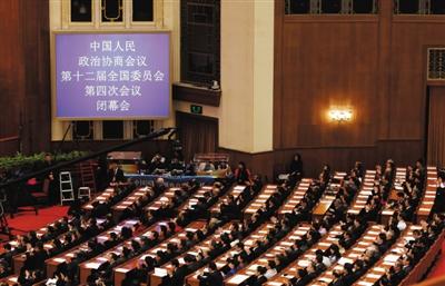 綜合新華社等媒體報道 中國人民政治協商會議第十二屆全國委員會第四次會議,14日下午在人民大會堂閉幕,會議通過了政協第十二屆全國委員會第四次會議關于常務委員會工作報告的決議、政協第十二屆全國委員會提案委員會關于政協十二屆四次會議提案審查情況的報告、政協第十二屆全國委員會第四次會議政治決議。