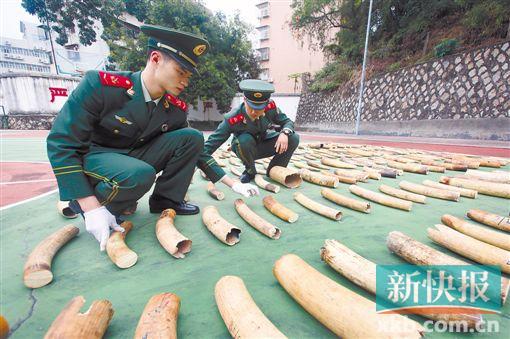 昨日,廣東公安邊防總隊(duì)對(duì)外通報(bào)稱,珠海市邊防支隊(duì)成功破獲一起特大涉嫌走私象牙案,查獲走私象牙221塊,共計(jì)約450千克,黑市價(jià)格達(dá)1800萬元人民幣,是近年來全國邊防部門查獲的最大宗走私象牙案。