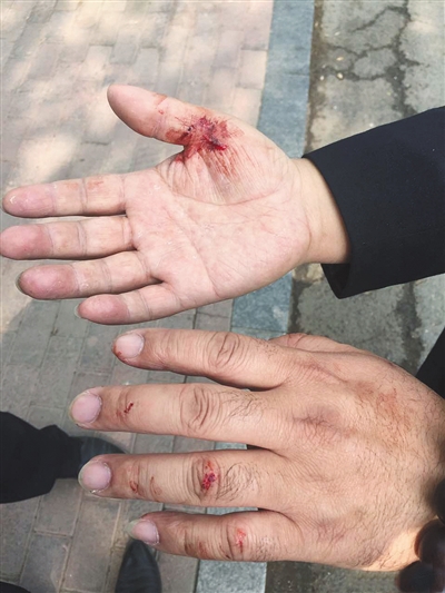 此外,一網(wǎng)友在當(dāng)?shù)卣搲蟹Q,在沖突中,城管的右手也被老人咬破,鮮血淋淋,多個指關(guān)節(jié)也出現(xiàn)了破損的情況。