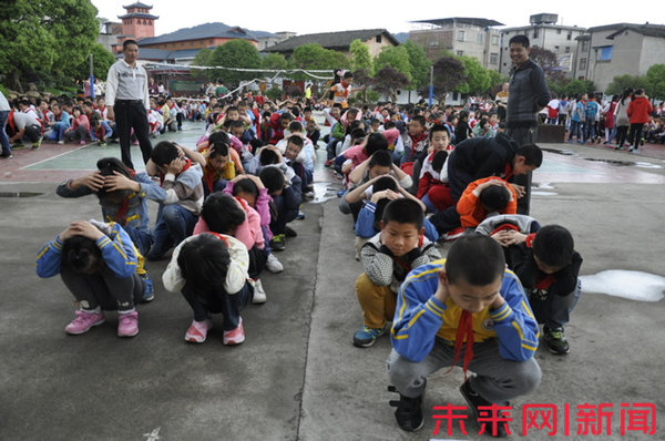 “嗚——嗚——”昨日下午,隨著急促警報(bào)聲的突然響起,福建省長汀縣實(shí)驗(yàn)小學(xué)的學(xué)生們紛紛拿出準(zhǔn)備好的手帕或毛巾捂住口鼻迅速跑向操場疏散。