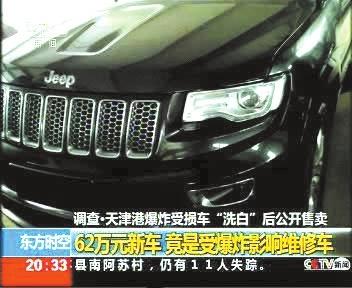 另?yè)?jù)記者調(diào)查,天津港事故中還有一類未被銷毀也不應(yīng)對(duì)外銷售的質(zhì)損車。在濱海新區(qū)一停車場(chǎng),一批受損的切諾基正以五折價(jià)格對(duì)外出售。