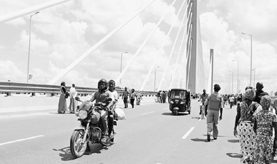 達(dá)累斯薩拉姆居民紛紛走上大橋,體驗(yàn)發(fā)展帶來的便利。